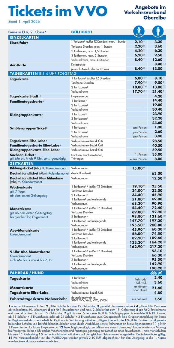 Bitte beachten Sie, dass am 1. April 2026 die Fahrpreise im VVO angepasst werden.